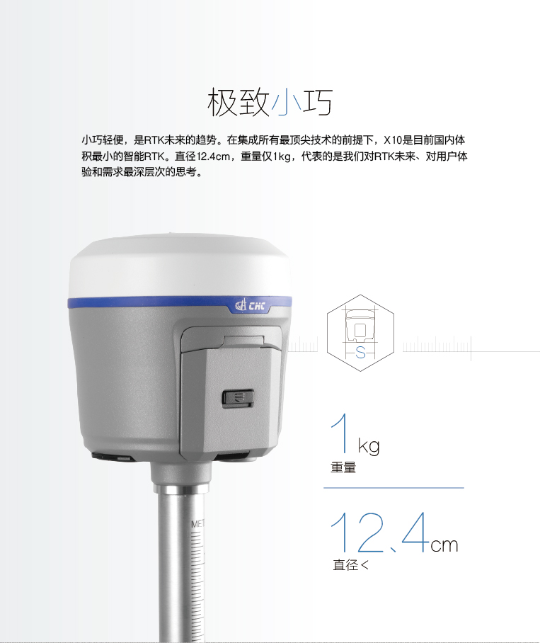 華測X10 智能RTK,是RTK領(lǐng)域內(nèi)的一次大膽的進化。它精致小巧但大有可為,快速精準的測量,堅固抗摔的材質(zhì),持久耐用的續(xù)航,和智能強悍的配置,為用戶帶來全新的測量體驗。